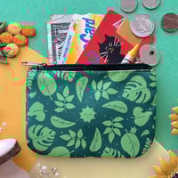 Decorative zipper pouch perfect for holding coins, folded bills, credit cards, and other small items.